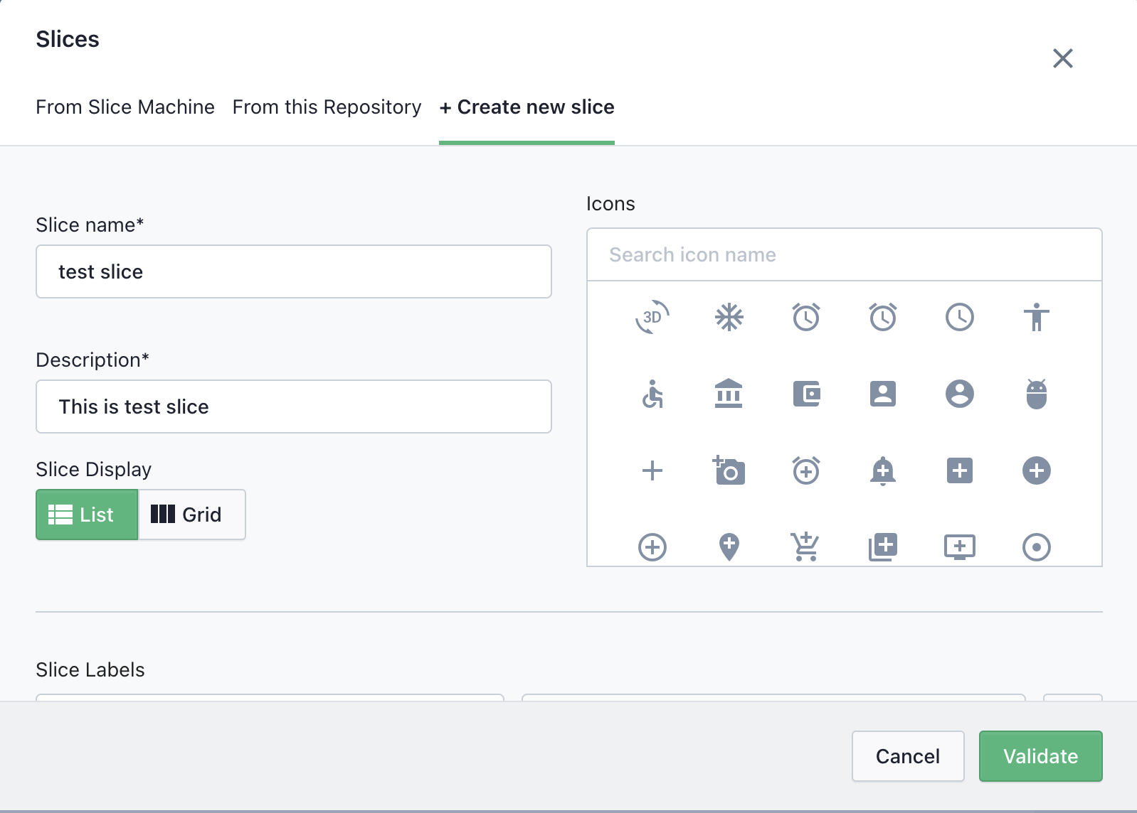 Fill in slice name and description and select appropriate icon
